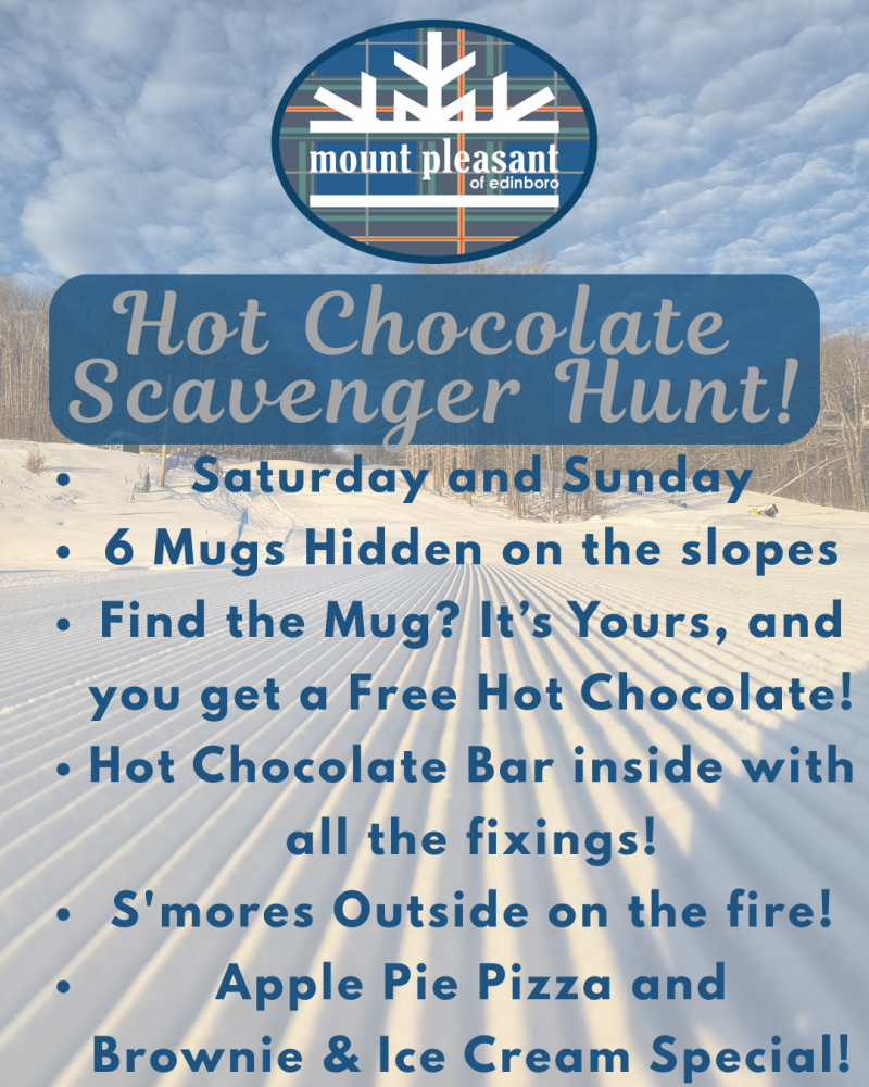 The Hunt: This Saturday and Sunday, 6 hidden mugs will be scattered across the slopes! Find a mug and it’s yours to keep—bring it to the Slopeside Grill and your first fill is on us!
